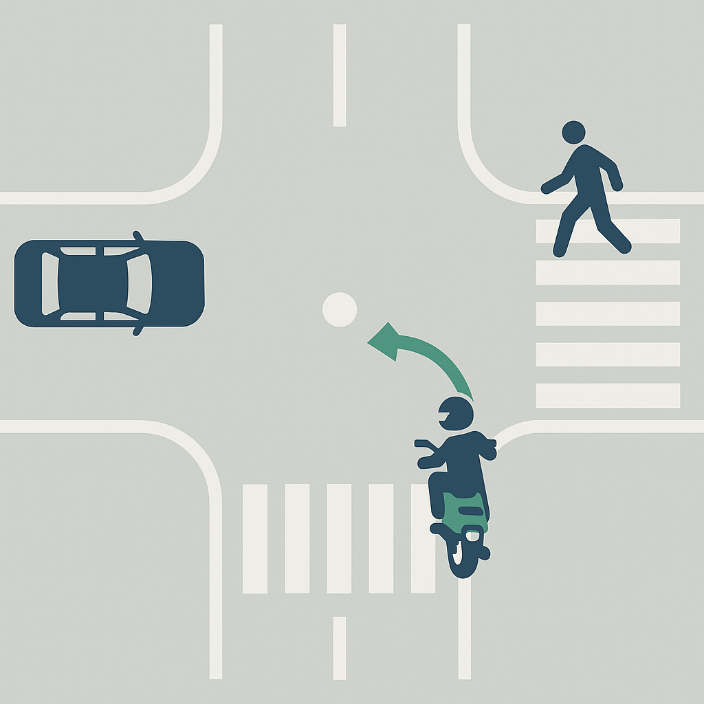 125cc超バイク配達員の交差点走行中に守る法令と違反リスク