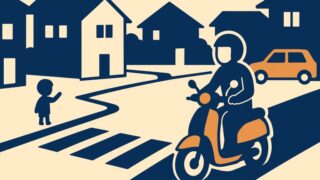 住宅地は歩行者や自転車、児童の飛出しが多く、交差点も小さく見通しが悪い場所が多い。原付は法定最高速度30km/h、歩行者優先と一時停止の厳守、歩道や路側帯を走らないことが基本です。そんな生活道路の規制についてまとめました。要点 原付の法定最...