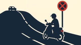 坂の頂上付近や急な下りは、視界の途切れと荷重移動で制動距離が伸びる高リスク区間。125cc超の自動二輪は速度域と慣性が大きく、無理な追越しや急制動の誤りが重大事故に直結するので、法では「追越し禁止」「徐行」「車間距離保持」「急ブレーキ禁止」...